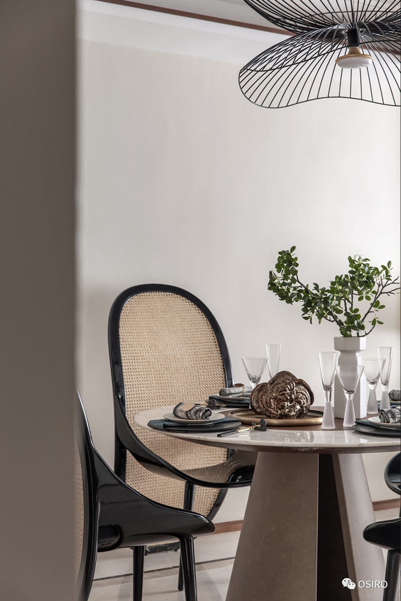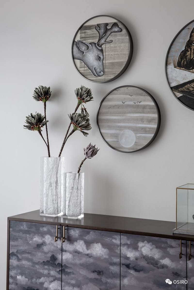 移步换境,豁然开朗,精致摆设宛然如画,静中生趣。地下室,不再是传统储物的空间,而恰似一几一椅一榻的雅舍。置身于厅中,如同待月迎风,仿佛人在画中,画在设计者心中。