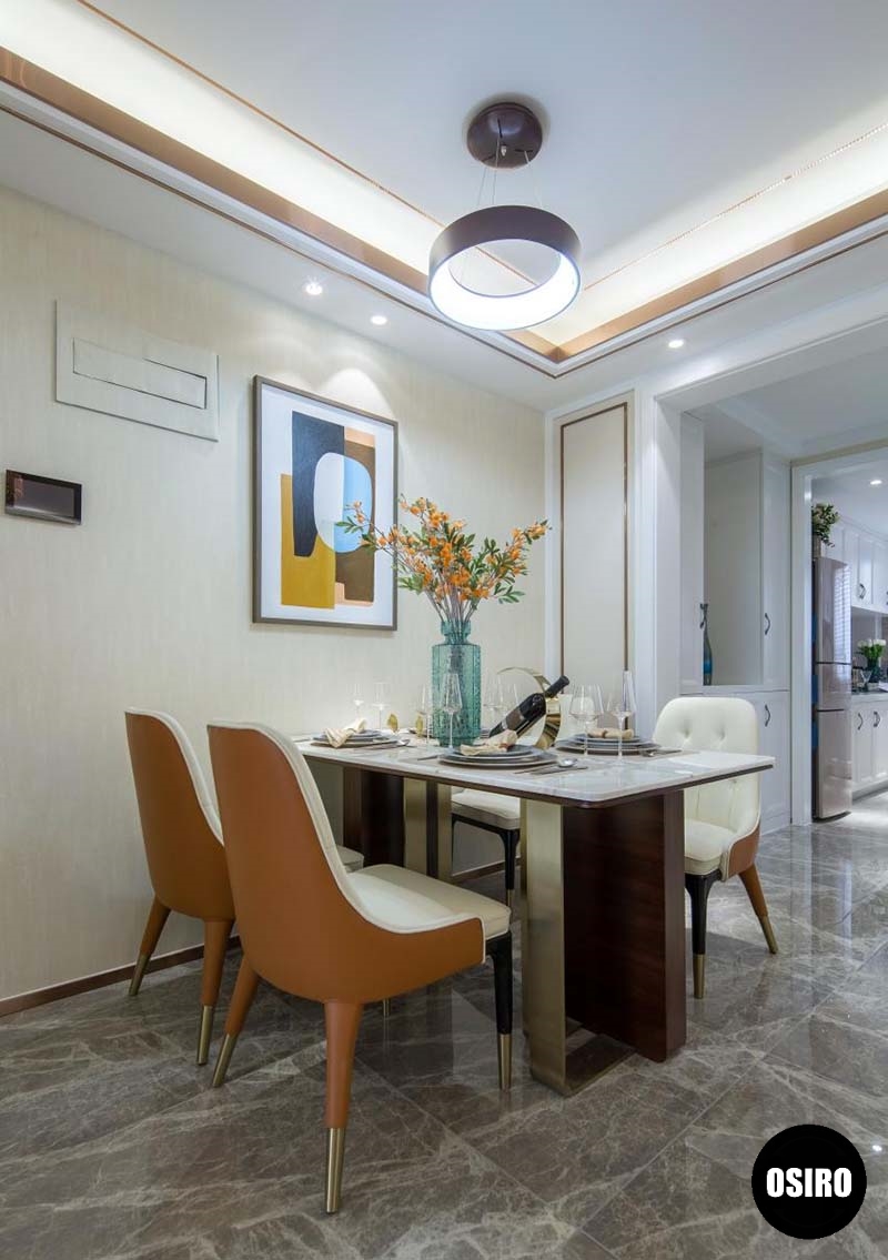 精致的格调、轻奢的质感,在餐厅空间中交汇。