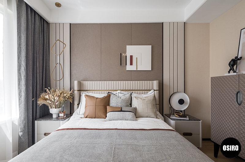 主卧主要营造安静温暖的卧房空间,合理的布局结合恰到好处的细节设计,