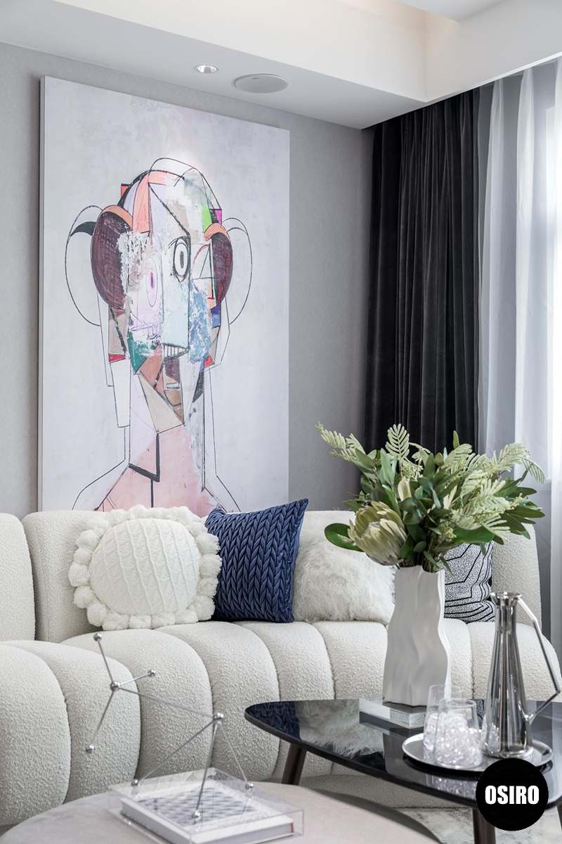 整个户型随处可见的艺术品为我们的家增色不少,如客厅来自于美国艺术家乔治·康多的名画。