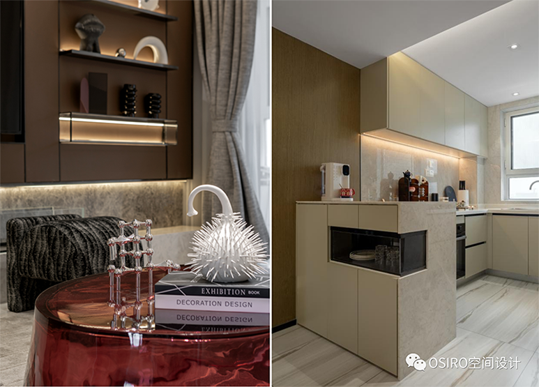 开放的客餐厨,为家人的互动留足想象——闲暇的假期,家人相围而坐,分享生活的琐事,西厨吧台奔忙着尝试为家人制作美味的记忆,以一个个温暖的画面,共同构造了家的意义。